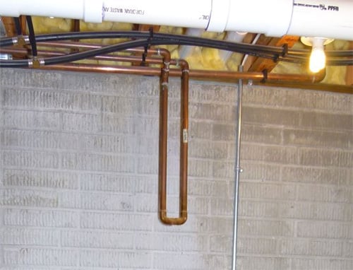 You may find a loop like this in your mechanical or utility room. This loop serves a purpose. This picture happens to be from a home Bryant's plumbing department installed a new water softener in. That loop of plumbing pipe was a sign that this home was plumbed when it was built for a softener to be installed in the future.